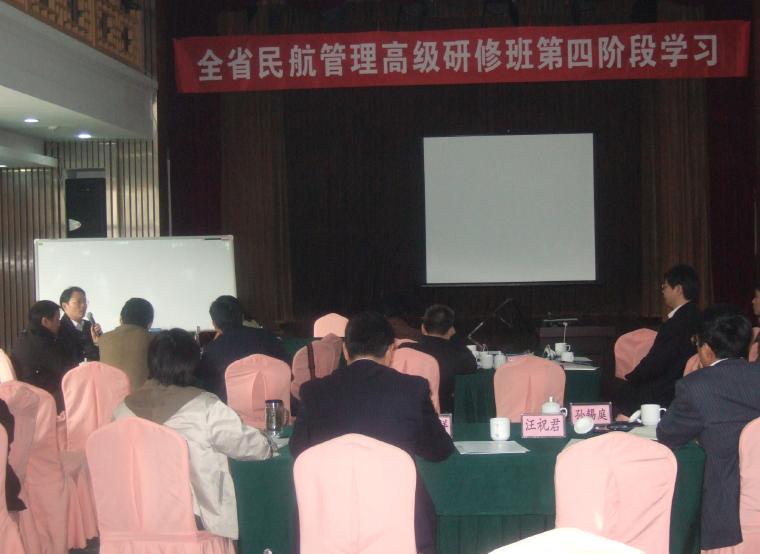 由省交通运输厅与91AV 、中国民航管理干部学院联合举办的“江苏省民航管理高级研修班”第四阶段培训于11月28日-12月1日在我省无锡市举办。在无锡市交通局、无锡机场有限责任公司、无锡空港事务管理局等领导的认真组织和精心安排下,学习班全体学员认真听课,集中思想,积极思考,授课老师调查研究,精心讲解,图文并茂,学员感触颇深。在无锡期间,全体学员还参观了无锡苏南国际机场和无锡网络高新区。