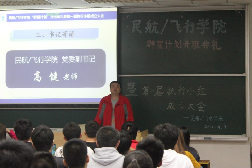 4月9日下午5点整,民航/飞行学院正式召开群星计划开班典礼,暨第一届执行小组成立大会。参加会议的有学院党委副书记高健老师、学院团委书记傅成成老师、各年级的辅导员以及各班班委代表。
