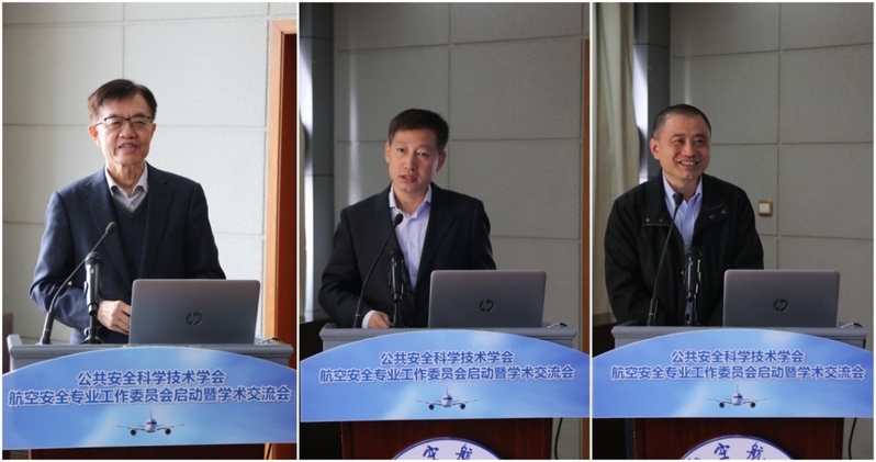 范维澄院士、中国民航局运行监控中心副主任孙韶华、中国民航上海航空器适航审定中心主任顾新分别作了“关于公共安全与学科”、“以改革创新扎实推进新时代民航强国思路下的应急管理工作”、“公共安全与适航审定”的主题报告。