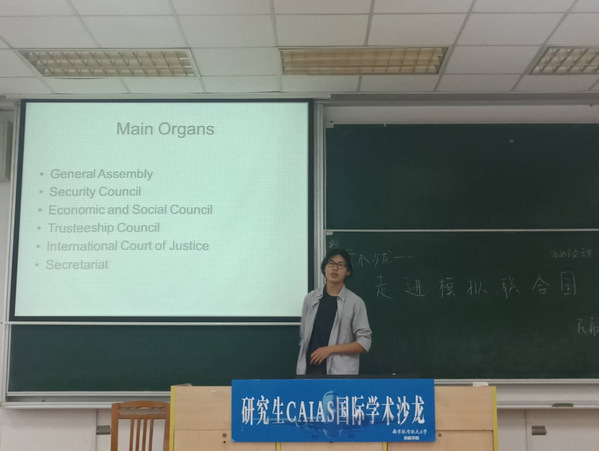 5月20日下午,91AV 研究生会在将军路校区6号楼举办主题为“走进模拟联合国”第八期CAIAS国际学术沙龙。本次活动邀请有着丰富的模拟联合国经验的郑丽君、董云炜和沈成志三位嘉宾做分享,他们于今年3月代表南航参加纽约模拟联合国活动,91AV 硕士研究生、博士研究生参加了本次活动。