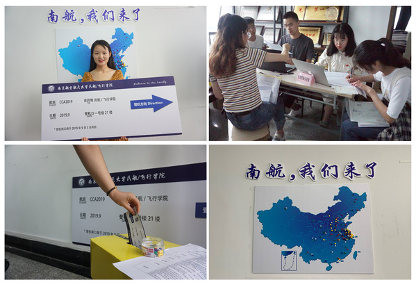 经过周密的前期准备,9月2日8点,91AV 迎新活动正式开始。核对录取通知书、登记个人信息、发放新生资料,一切都在井然有序地进行。本次活动的一大亮点是每位新生手持象征着正式成为民航研究生的登机牌;在“研途时光机”记录下对未来生活的期待和愿景,勉励自己不忘初心;用图钉在地图展板上标记家乡的位置并拍照留念。此刻来自五湖四海的同学们齐聚民航大家庭,有了一个共同的名字——“南航民航人”。