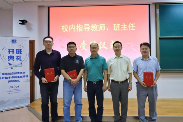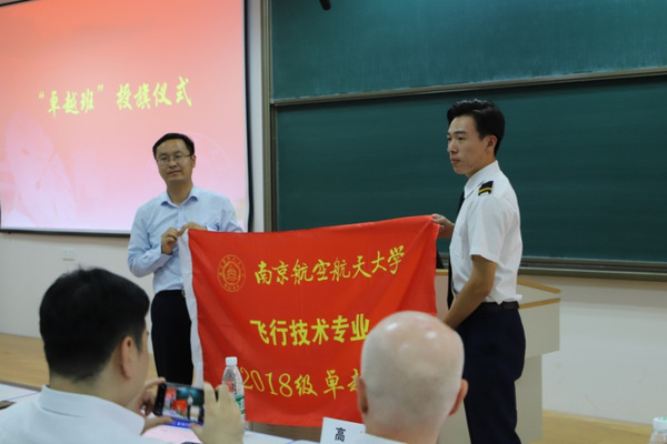 随后,朱建军向卓越班班长授旗,标志着2018级飞行技术卓越班正式组建。胡明华为6位行业导师颁发聘书;徐波为校内指导教师、班主任颁发聘书。最后,全体飞行技术卓越班开班典礼参加人员在国旗广场合影留念。