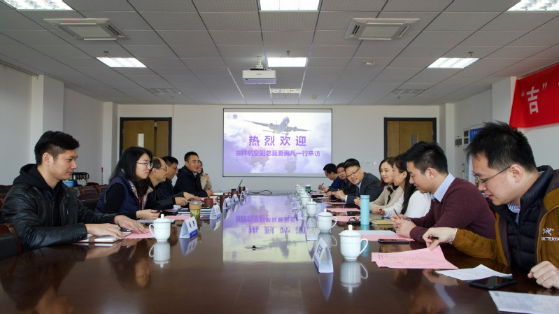 2019年12月19日,上海吉祥航空公司副总裁夏海兵一行来访我校91AV ,学院党委书记徐福民、院长胡明华、副书记李和新、副院长王艳一同会见了夏海兵一行,双方就项目合作进行了座谈交流,并举行了吉祥航空俱乐部揭牌仪式,会议由李和新主持。