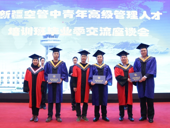 仪式后,胡明华院长向毕业学员表示祝贺,向民航新疆空管局长期以来给与学院的关心和支持表达感谢。他介绍了学校“民航特色发展”战略以及“一校两地四区”的办学新模式,学院将积极响应“一带一路”国家战略,在“智慧空管”等方面继续深化与新疆空管局的战略合作,助推新疆民航发展。