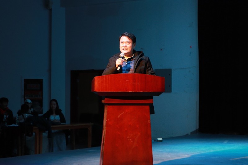 然后,15级2+2已经结束外训回国的学长学姐向大家作了在国外学习生活的故事分享,并给曾经的辅导员张老师献花,表达真挚的感谢和美好的祝福。