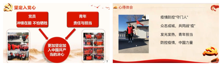 在学习“微”体会部分,师生党员们通过观看视频、线上讨论等方式交流大家在疫情防控工作中的所见所闻、所行所为、所思所想。两校师生党员纷纷表示,以线上方式开展联合“云党课”形式好,效率高,收获多,希望以后能经常有机会进行线上交流。课程最后,全体党员重温入党誓词,接受心灵的洗礼,铭记庄严的承诺,以更加饱满的热情投身到工作和学习的事业中。
