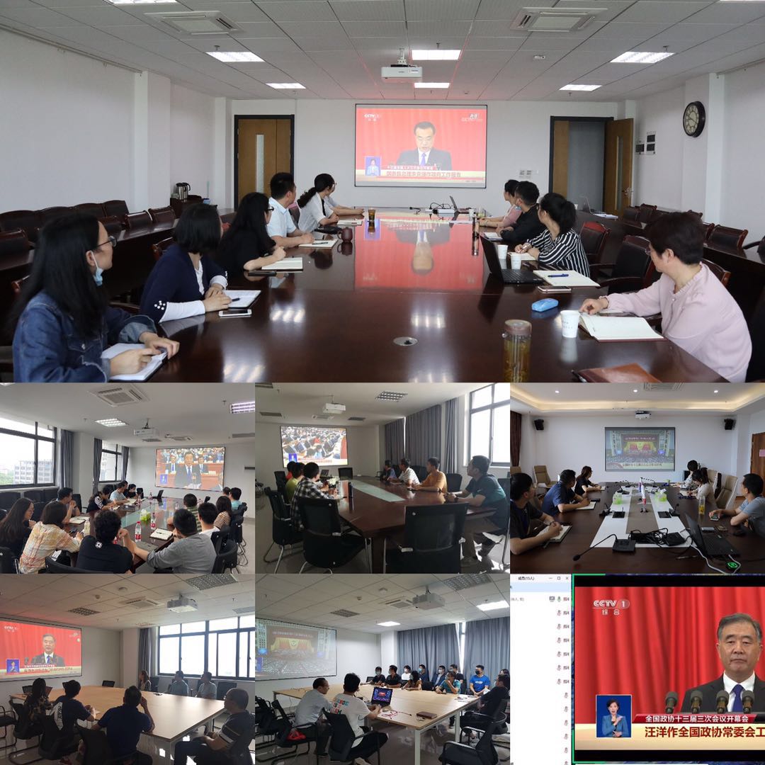 学院教工党支部、学生党支部立足实际,于学院会议室、办公室、教研室、学生宿舍等地及时关注“两会”动态。通过线上线下集中观看,利用电视、网络、手机客户端等渠道多方式收看全国“两会”开幕式直播。大家认真聆听,仔细记录,积极热议。
