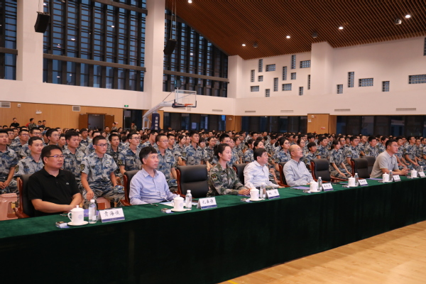 教务处处长孔垂谦、天目湖校区党工委书记张新明、天目湖校区管委会副主任缪长宗、91AV (飞行学院)党委副书记贡海俊、校区军训旅教官与近千名新生共同听取了讲座。