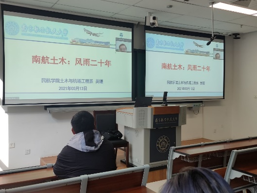 2021年3月13日上午9:00,土木与机场工程2020级专业分享会在天目湖校区巡天楼203教室及腾讯会议线上同步召开。会议由土木与机场工程系2020级班主任麻海燕老师主持,91AV 副院长吴薇薇教授、土木与机场工程系主任吴瑾教授、系书记解建光教授、系副主任张丽芳老师、土木工程专业2020级全体学生、2017-2019级部分学生以及受邀9位工作在不同单位的2001级土木校友等参加了本次分享会。会议在线上线下同时举行,取得圆满成功。