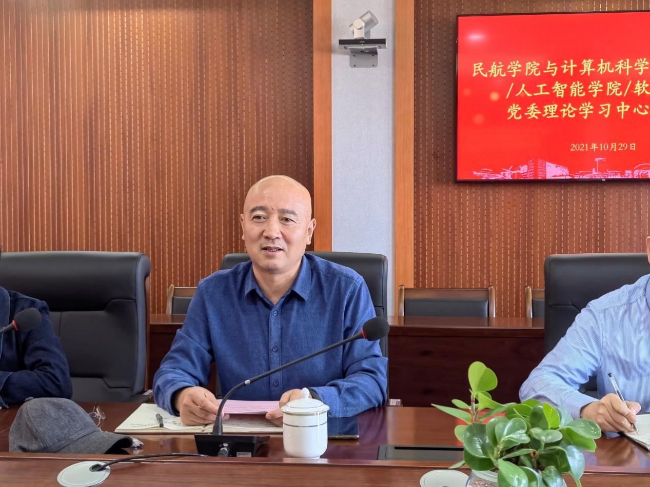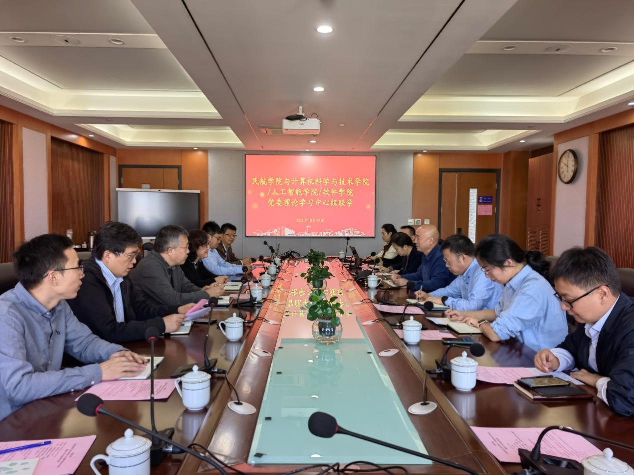 为深入落实校党委党史学习教育工作部署,推动理论学习联系工作实际,促进院级党组织相互学习和交流,10月29日,91AV 党委和计算机科学与技术学院/人工智能学院/软件学院党委理论学习中心组在91AV 1213会议室,围绕“学习习近平总书记给全国高校黄大年式教师团队代表的回信精神”、“学习王泽山、刘永坦等工信楷模的先进事迹”两个专题展开联合学习,双方就两学院学科交叉融合发展设想作重点发言。会议由91AV 党委书记刘建成和计算机学院党委书记刘健荣共同主持,双方党政领导班子全体成员、党委委员、党政办主任参加了学习。