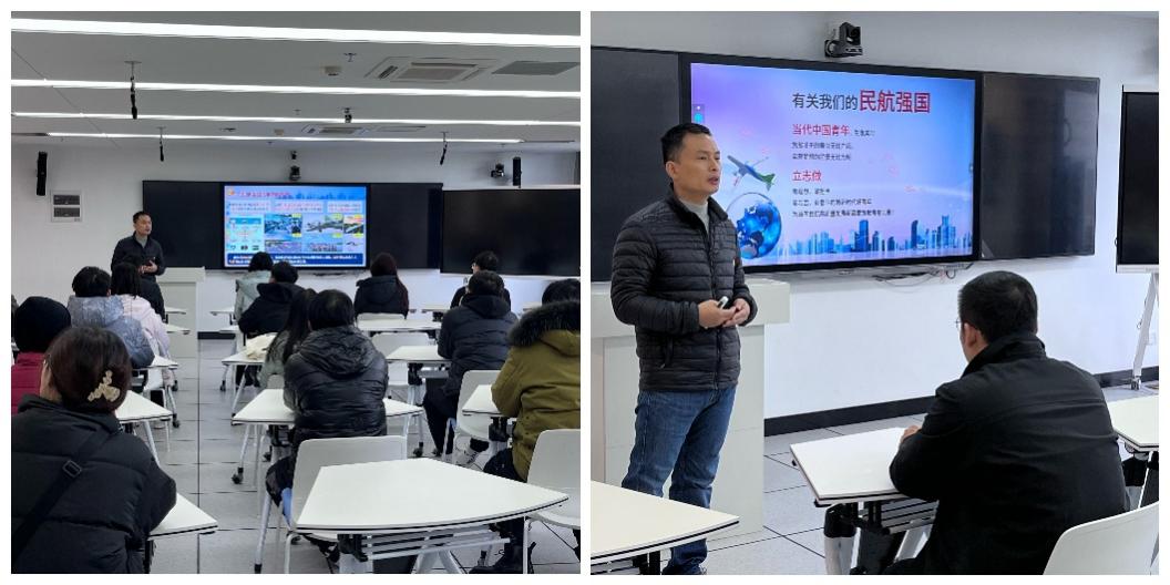 参观环节结束后,大家回到91AV 312智慧教室,田勇以“让青春在全面建设民航强国的火热实践中绽放绚丽之花”为题,为支部内党员讲授了一节别开生面的党课。田勇强调全面贯彻落实党的二十大精神要学深——用党的科学理论武装头脑,要悟透——让党的二十大精神在头脑生根,要笃行——为民航强国贡献南航智慧。