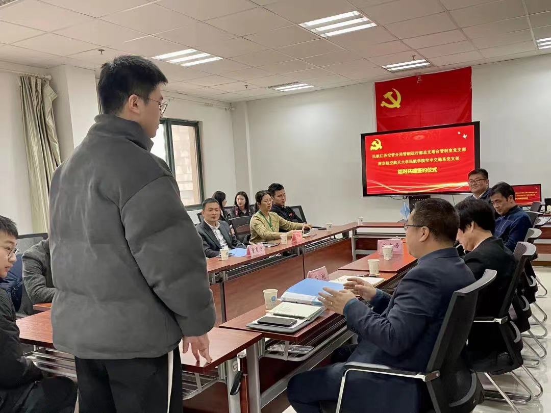 田勇就江苏分局对91AV 空管系教学和科研工作的支持表示感谢。多年来,塔台党支部每年都会派高级教员参与空管系大四学生做程序、雷达和塔台管制模拟教学,两个党支部为响应习近平总书记的“培养高质量人才”的号召保持着良好密切的交流与合作。民航江苏空管分局党委李志源书记表示此次活动是在深入学习习近平新时代中国特色社会主义思想的实践之举,是在抓好党建工作中实现优势互补、共同提高的双赢之举。空中交通系多年来为江苏空管分局培养输送了112名优秀毕业生,从事管制工作人员82名,为分局工作高质量的发展做出了巨大的贡献。