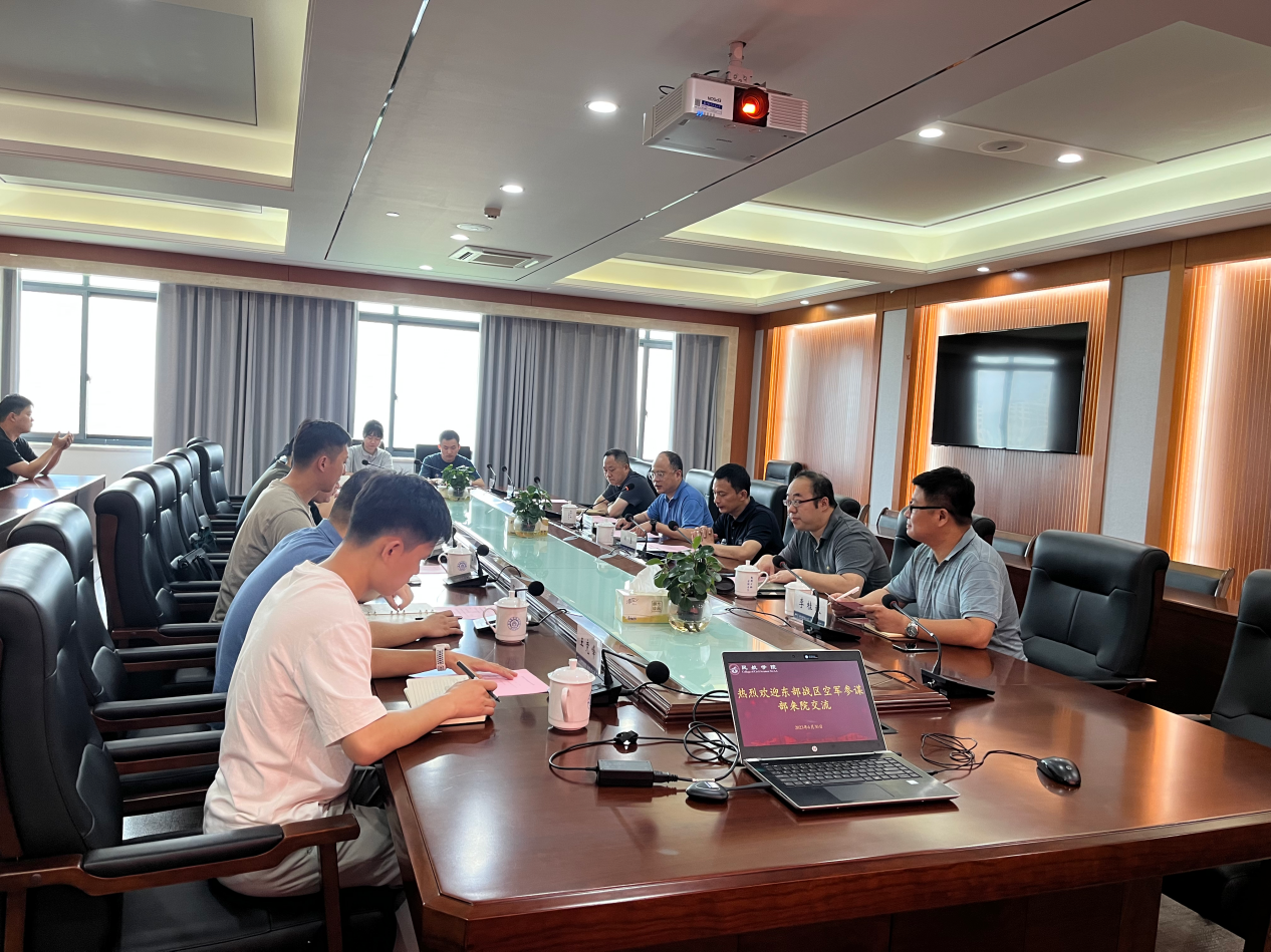 6月30日,东部战区空军参谋部航管处来院交流,上校主任刘熠、联指中心空域管理队中校副队长兰翔、参谋部航管处少校牛立杰、韩文伟等一行12人,91AV 副院长田勇、空中交通系教师代表参加座谈。座谈会由空中交通系支部书记董襄宁主持。