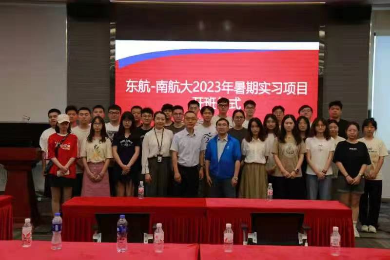 在实习开班仪式上,东航技术应用研发中心(东航训练基地)总经理王亚骏讲述了中国民航与东航发展历程、东航91AV、社会责任等。仪式结束后,同学们一同参观了动态和静态客舱模拟器等设施场所。