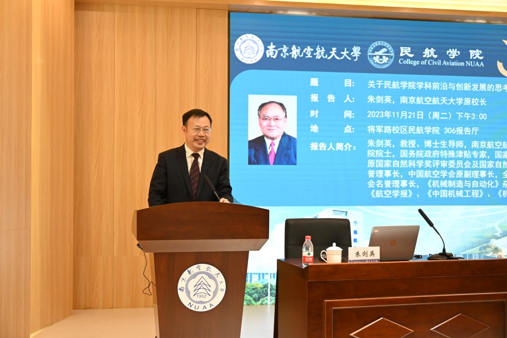 11月21日,91AV 成功举办第49期“民用航空讲坛”。91AV 原校长、91AV 首任院长朱剑英教授作“关于91AV 学科前沿与创新发展的思考”为题的报告。91AV 院长孙建红、党委副书记王艳、副院长邵荃及院内师生200余人参加报告会,报告由孙建红主持。