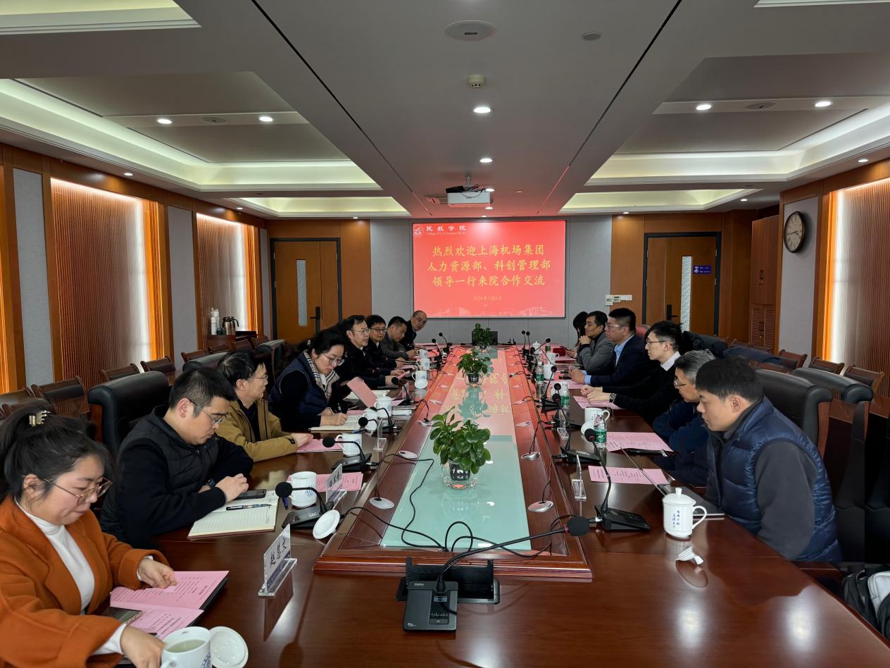 3月6日上午,上海机场(集团)有限责任公司(以下简称上海机场集团)人力资源部总经理徐康、科创管理部副总经理兼大数据中心主任张卓剑一行来院参观交流。91AV 党委书记李君、院长孙建红、党委副书记王艳、副院长邵荃、团委书记赵慧文、各系主任及教师代表参加实验室参观和座谈会。