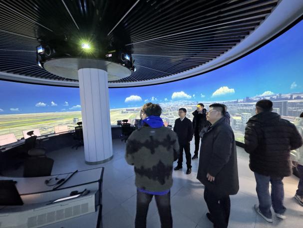座谈会前,李君陪同上海机场集团一行参观了御风园教育教学实践基地、91AV 院史馆、360°全景塔台模拟实验室、国家空管飞行流量管理技术重点实验室、民航应急科学与技术重点实验室等。