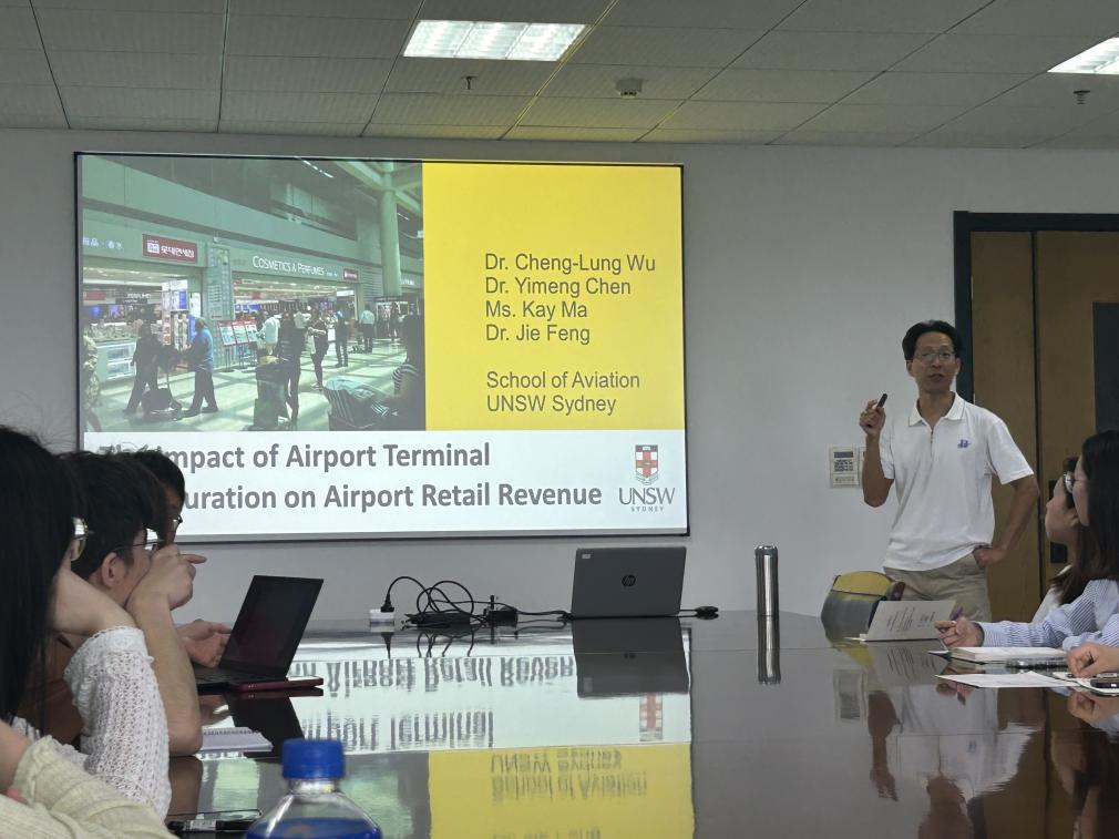 5月21日上午,澳大利亚新南威尔士大学副教授吴政隆(Wu Cheng-lung)做客我院第54期“民用航空讲坛”,并作题为“The Impact of Airport Terminal Configuration on Airport Retail Revenue: An Agent-Based Simulation with Passenger Behaviour Models”的报告。91AV 副院长吴薇薇、邵荃,学院师生30余人参加报告会,活动由邵荃主持。