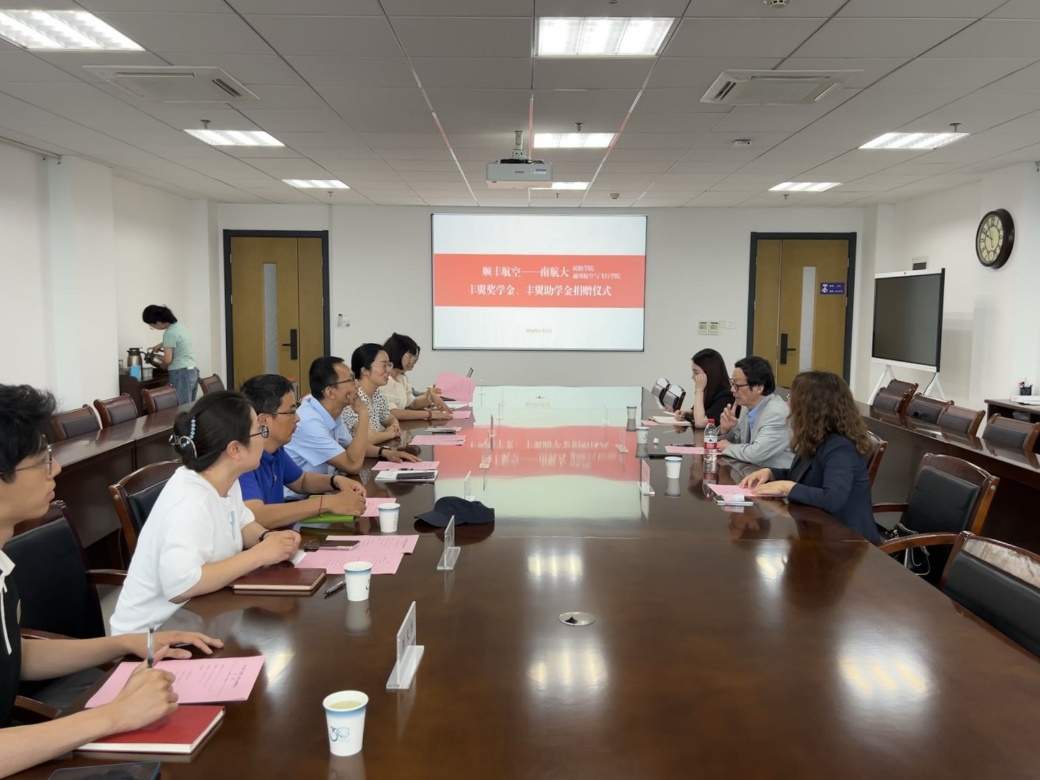 6月5日,91AV 、通用航空与飞行学院和顺丰航空有限公司举行奖、助学金捐赠仪式暨“访企拓岗促就业” 专项行动校企交流会。顺丰航空有限公司副总裁王清晨,人资综合部经理张帮娇、李丹妮,91AV 党委副书记王艳、通用航空与飞行学院党委副书记魏慧冬,党政办/发展联络部基金会办公室主任卢一亭及91AV 部分专业教师、辅导员参加交流座谈。