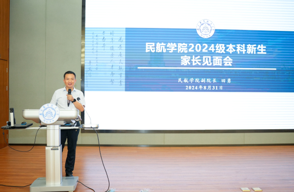 田勇代表学院对2024级本科新生和家长的到来表示欢迎,他围绕历史沿革、学科建设、师资队伍、人才培养等方面介绍了学院的基本情况,并对大学学习特点进行分析。他表示,91AV 办学底蕴深厚,学科专业实力雄厚、人才培养成效显著、对行业发展贡献突出,有基础、有条件、有能力、有信心把同学们培养成民航领域的优秀人才。