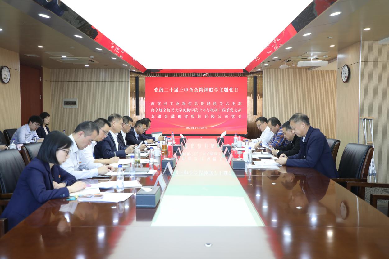本次党建共建是贯彻落实党的二十届三中全会精神,落实学院“校局场司”四位一体党建新模式的有益尝试,为三方在航空航天产业链融资服务、推进产学研用协同创新、航空航天专业人才共育等方面开展合作打下基础。未来,土木与机场工程系党支部将以共建为抓手,与苏银金融租赁股份有限公司和南京市工信局有关处室深化合作,聚焦国家重大战略需求,通过产业链、创新链、人才链深度融合激发人才创新活力,为实现高水平科技自立自强、加快建设民航强国贡献力量。