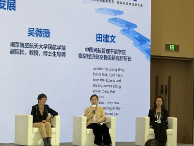 在开幕式的颁奖环节,大会发布了2022、2023年度中国航空运输协会民航科技奖评审结果,民航工程系教授陆中、空中交通系教授王艳军、空中交通系副研究员袁立罡团队研究成果分获二、三等奖,吴薇薇、邵荃、陆中、土木与机场工程系教授吴瑾受聘为中国航协特聘专家。在航空物流分论坛上,吴薇薇作为特邀专家参加低空物流高质量发展主题圆桌论坛。