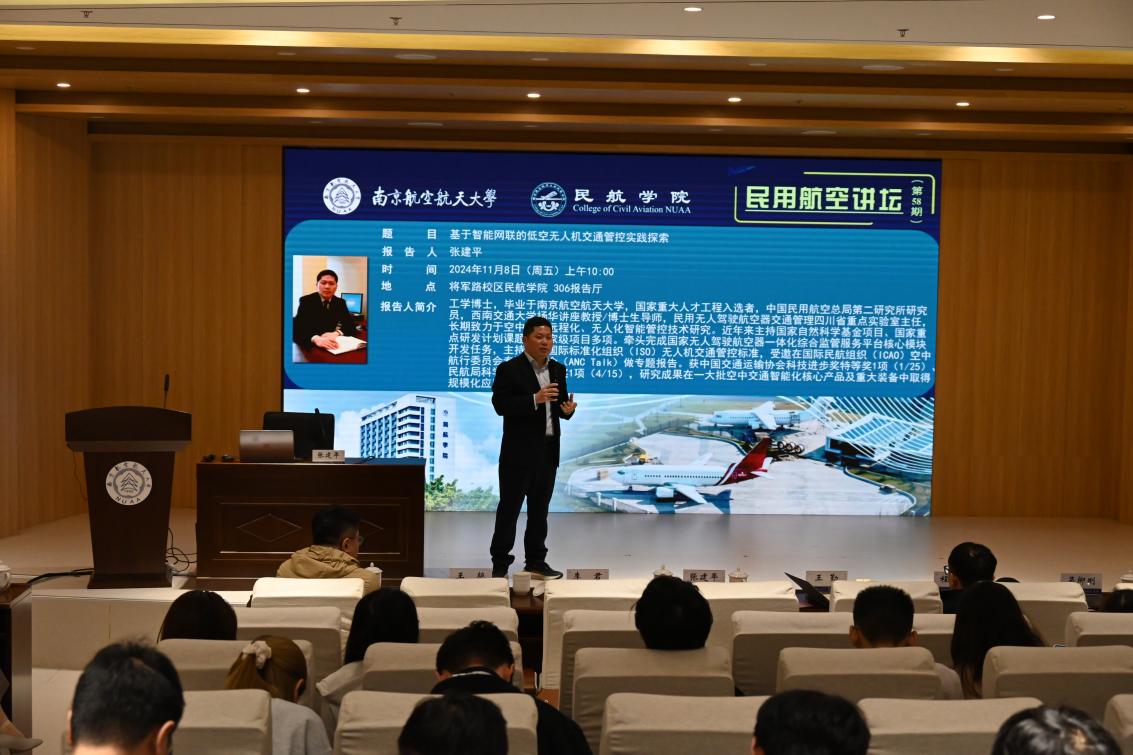 11月8日上午,91AV 成功举办第58期“民用航空讲坛”暨张建平兼职教授聘任仪式。国家重大人才工程入选者、中国民用航空总局第二研究所研究员、民用无人驾驶航空器交通管理四川省重点实验室主任、我院院友张建平受邀作题为《基于智能网联的低空无人机交通管控实践探索》主题报告。91AV 党委书记李君、通用航空与飞行学院院长王勤、南方航空公司地服部副总经理程启平,91AV 各系主任、师生代表共200余人参加报告会,报告会由91AV 党委副书记王艳主持。