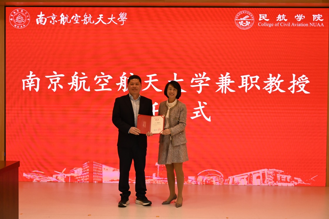 李君为张建平颁发兼职教授聘书。张建平表示,作为南航校友、民航院友,此次受聘为91AV 兼职教授,既是荣誉,更是责任。未来将积极履行南航兼职教授职责,进一步在学术交流、科研合作、人才培养等方面推进合作,为“交通强国”民航新篇章建设做出更大贡献。