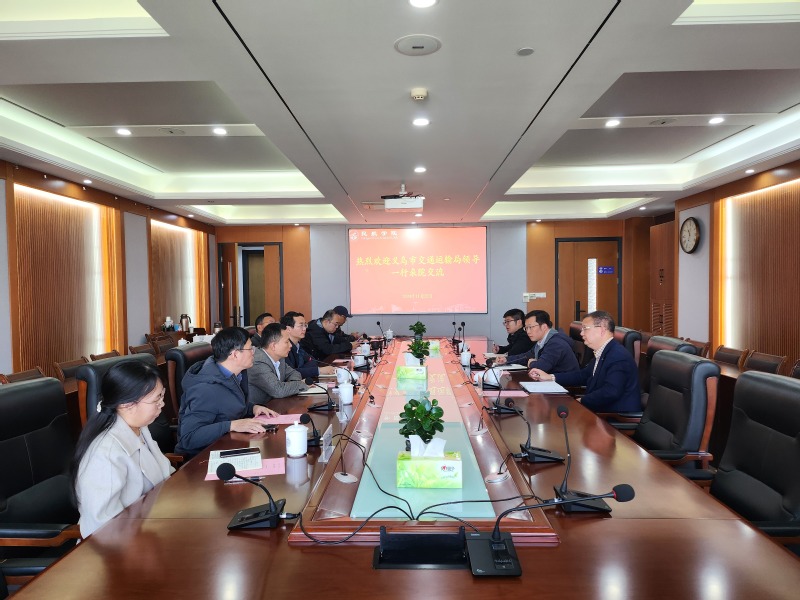 11月22日,浙江省义乌市交通运输局党委委员、办公室主任朱义带队来院调研。91AV 院长张卓然,副院长田勇、邵荃及各系班子成员参加座谈。座谈会由邵荃主持。