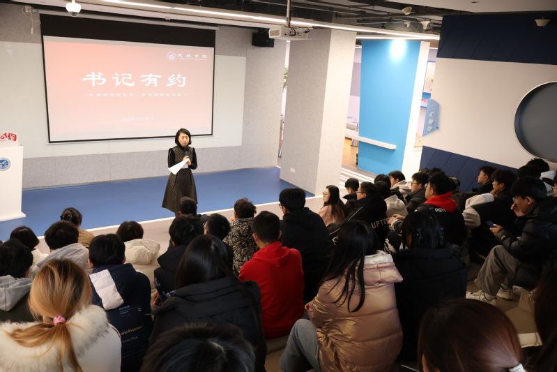 为加强学生科创素质能力培养,以科创实践助推专业学习,12月20日,91AV 在天目湖校区“一站式”智慧民航创新工坊举办“书记有约”活动。学院党委书记李君、党委副书记王艳、土木与机场工程系主任张锦华及中国国际大学生创新大赛获奖代表参加活动,辅导员王雨薇、唐琳及土木工程、智能建造专业50余名学生现场聆听。活动由王艳主持。