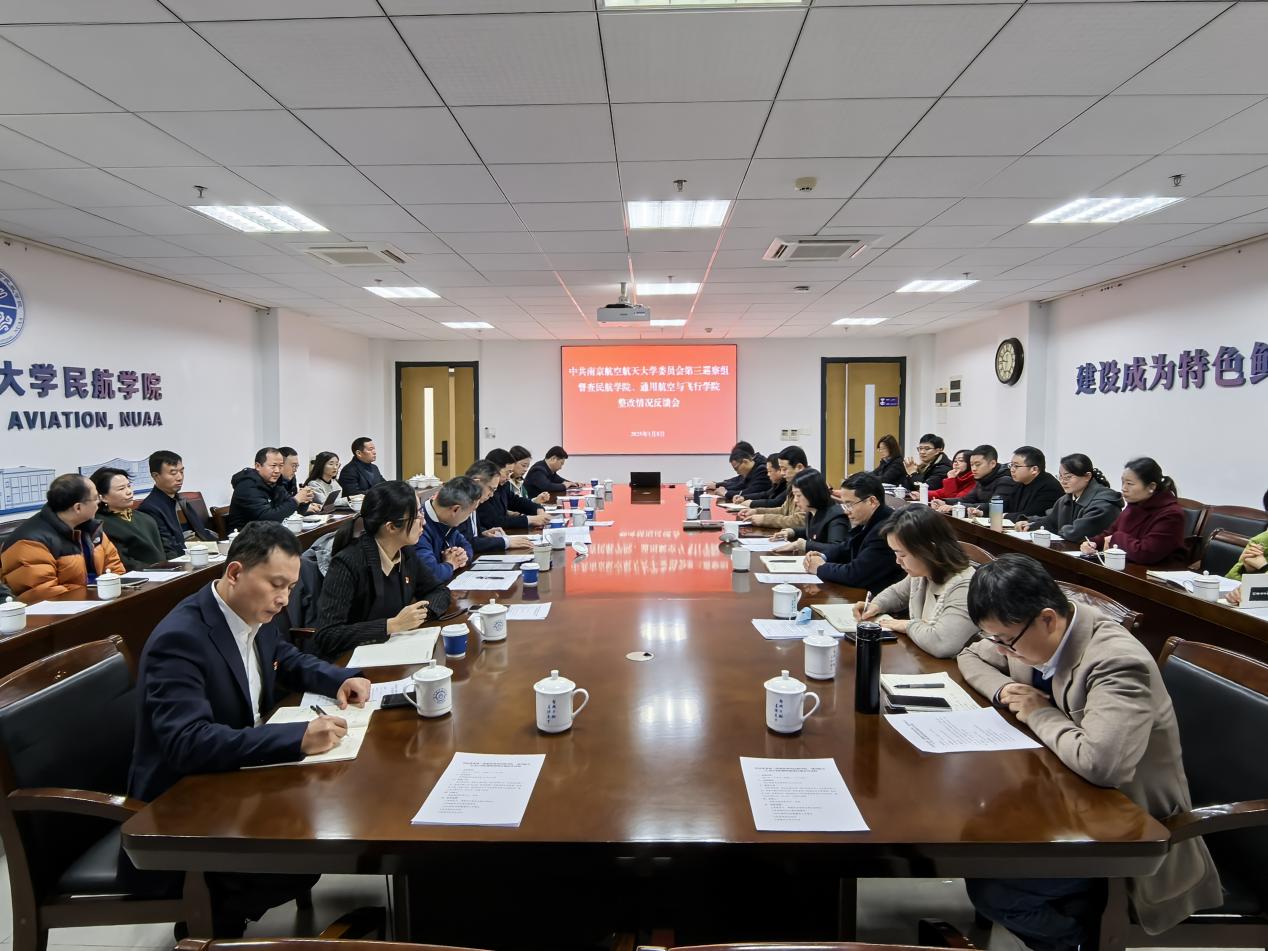1月8日,根据学校党委巡察工作领导小组部署,校党委第三巡察组向91AV 党委、通用航空与飞行学院党委反馈整改督查情况。校党委常委、副校长张启钱,校纪委副书记、正处级巡察专员、巡察办副主任刘红旗,校党委第三巡察组组长季海群,联络员王瑾出席反馈会。91AV 、通用航空与飞行学院领导班子全体成员,教工党支部书记,系主任及科级干部参加会议。会议由91AV 党委书记李君主持。