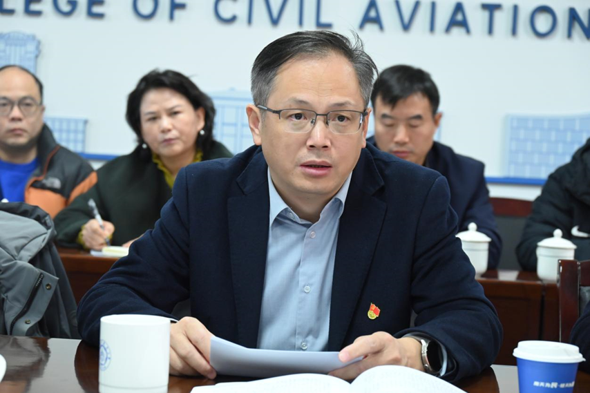 高健代表通用航空与飞行学院党委和91AV 党委作表态发言。一是校内密切配合,做强做大学校民航通航特色;二是充分利用各自在行业内的优势和影响力,积极联系校外资源,搭建产学研用合作平台,不断提升民航通航办学水平和影响力;三是充分发挥现有优势,争取大平台、大项目的引领和带动,产出更多科研成果,培养更多优秀人才,为学校的特色发展注入新的活力、动力,为提升学校整体办学水平作出更大的贡献。