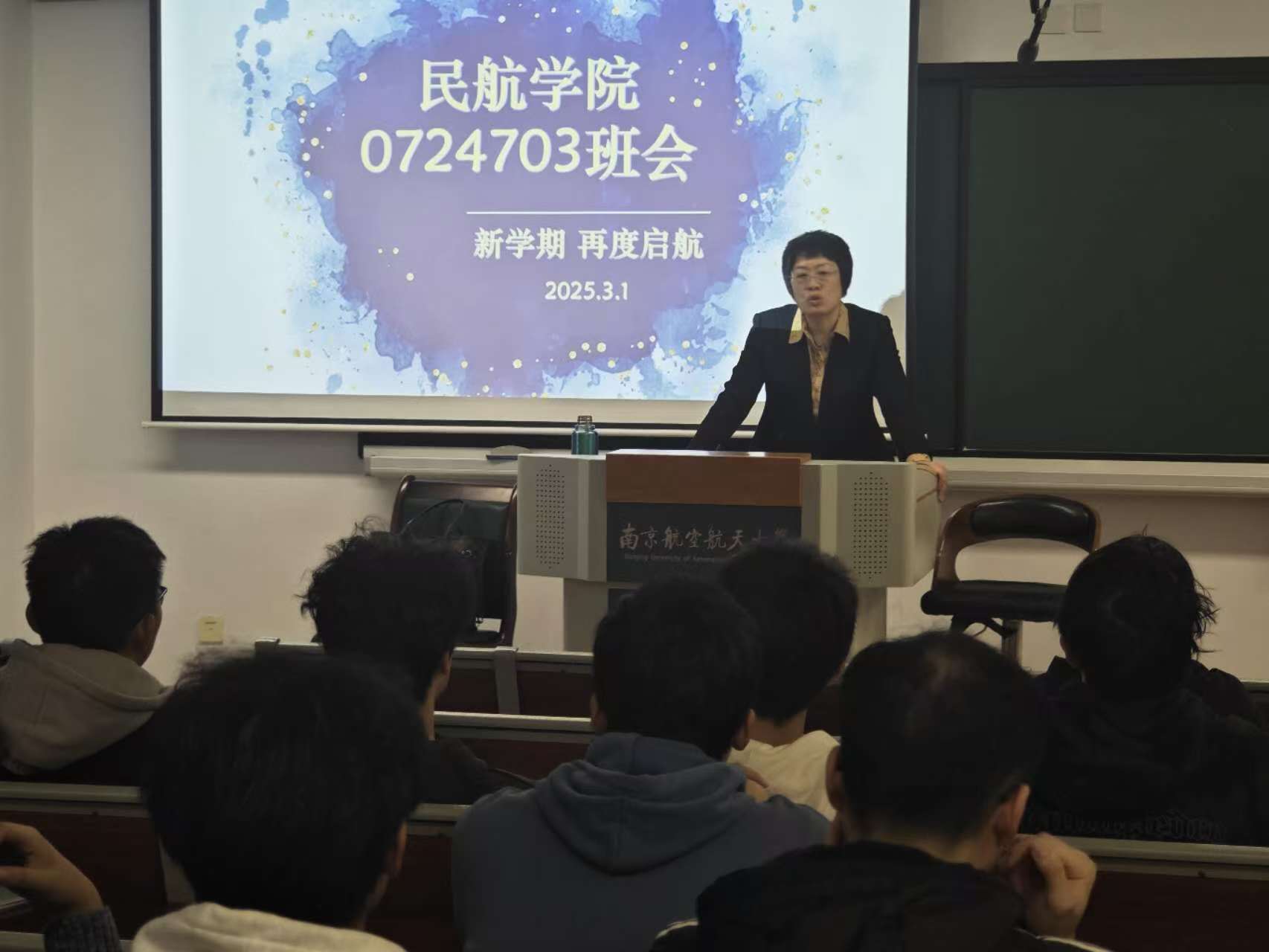 为进一步加强低年级学风建设,切实提升学生学习内驱力,3月1日,91AV 0724703班在天目湖校区巡天楼T1203教室召开"新程再启 笃学砺行"主题班会,班主任姜雨主持活动并围绕学业发展、科研创新、班级建设等维度进行专题指导。