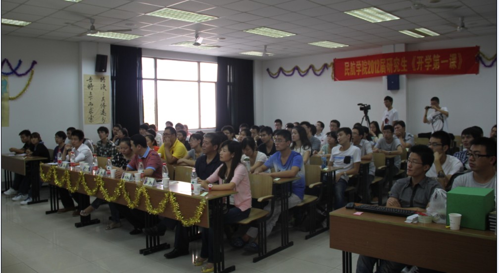 金秋十月,我们用壮志谱写青春;梦想起航,我们用豪气迈向未来。在这收获的季节里,91AV 2012级研究生开学典礼在江宁校区五号教学楼隆重举行。本次活动以“开学第一课,最初的梦想”为主题,参加人员为全体2012级研一新生,同时到场的嘉宾有:91AV 党委副书记高健老师,91AV 副院长葛红娟老师,飞行学院辅导员张学财老师,教务处侯美丽老师,研究生辅导员谢菲老师以及10级程傲学长。