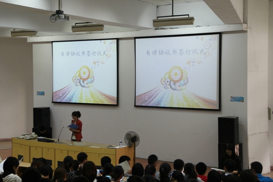 大会现场,听了许多同学和校友的发言,同学们都有很多感受,也都有了自己向优秀靠近的方法,并在现场与在座同学进行互动交流,许多同学都认为,优秀要从自我约束开始,优秀从自律开始!最后,每位同学都为自己设定了一个目标,并写在卡片上,交到了辅导员的手中,然后自发地在自律协议书上签下了自己的名字。协议书不仅是对自己承诺,也是对未来那个优秀的自己承诺。