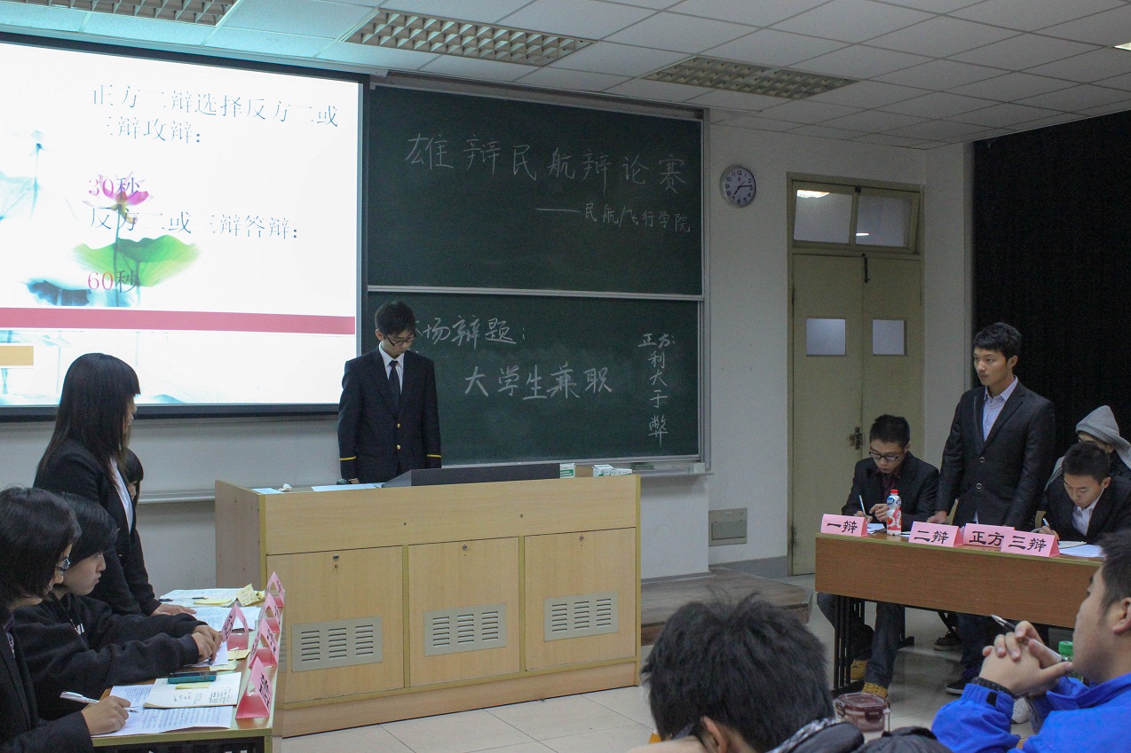 2012年12月9日下午4点,民航∕飞行学院在5103,5202,5203教室同时开展第十六期二级团校下设的系列活动之一—雄辩民航辩论赛。参加活动的有12级各班代表对及其智囊团,全过程由评委审定。