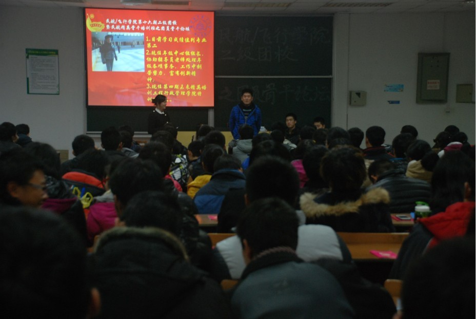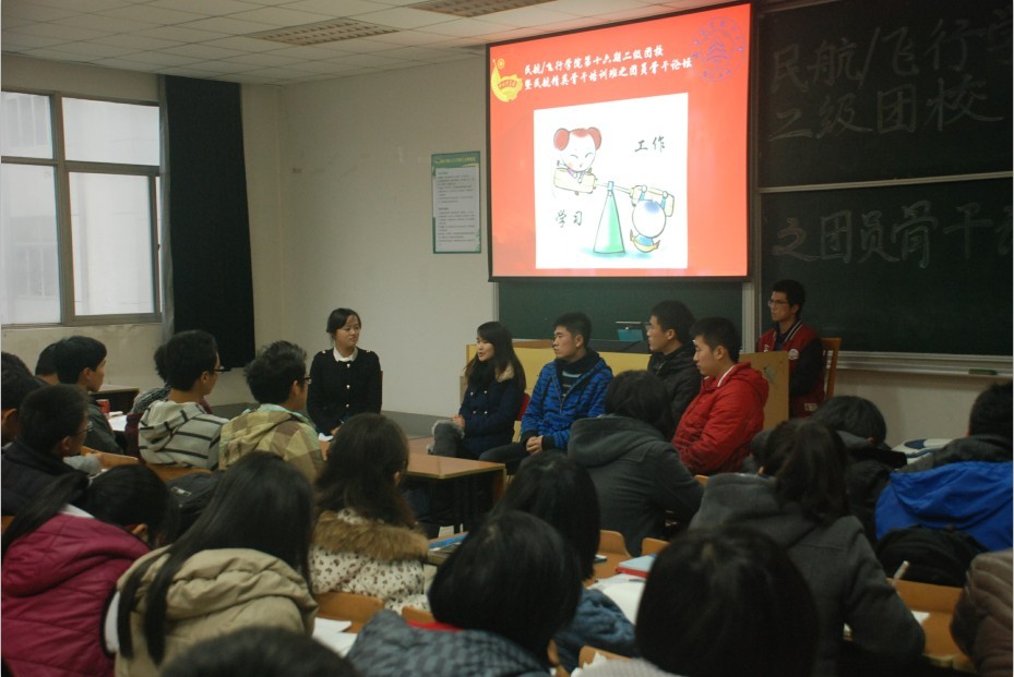 2012年12月16日下午16:00,民航/飞行学院2012级二级团校系列课程之“团员骨干论坛”在6101教室隆重举行。论坛由11级张红同学主持,同时邀请到民航/飞行学院团委副书记魏小婵,民航11级中心组组长陈雨童,民航11级301班班长林萌,飞行11级副大队长邵将作为本次论坛的嘉宾。
