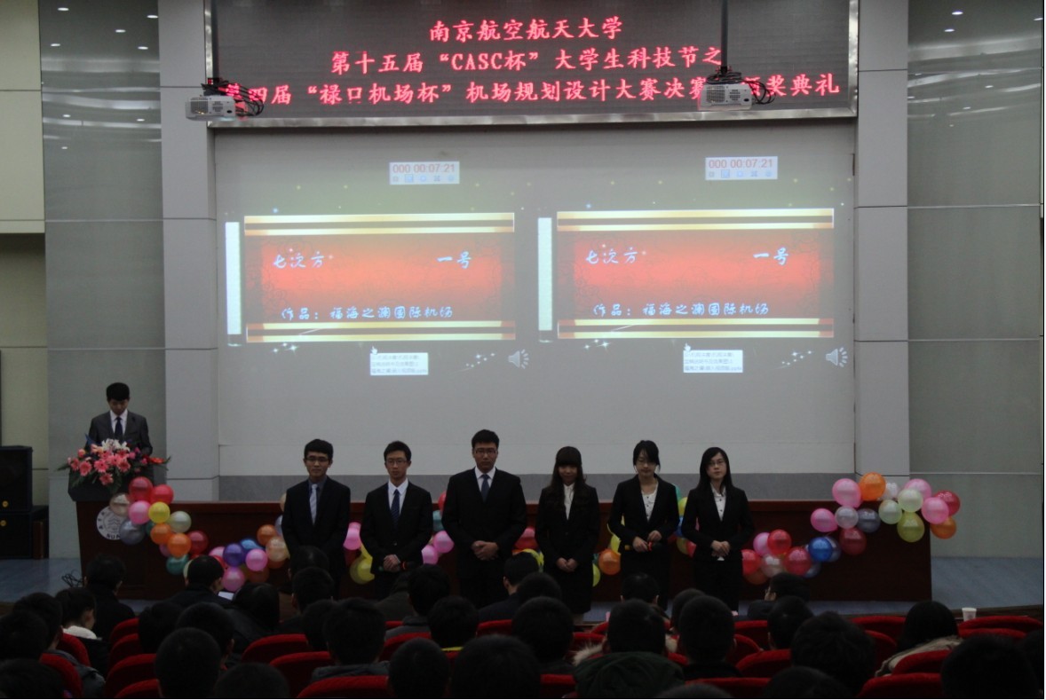 2012年12月19日,由南京禄口国际机场、校团委主办,民航/飞行学院承办的91AV 第十五届科技节之第四届“禄口机场杯”机场规划大赛决赛暨颁奖典礼在江宁校区主楼报告厅顺利举行。参加本次大赛的领导和嘉宾有南京禄口国际机场人力资源部部长王洪涛、南京禄口国际机场扩建指挥部总指挥陈邦昌、91AV 党委副书记高健老师、校团委副书记张林老师、航空宇航学院解建光教授、民航/飞行学院机场运行管理系夏洪山教授、曾小舟老师。