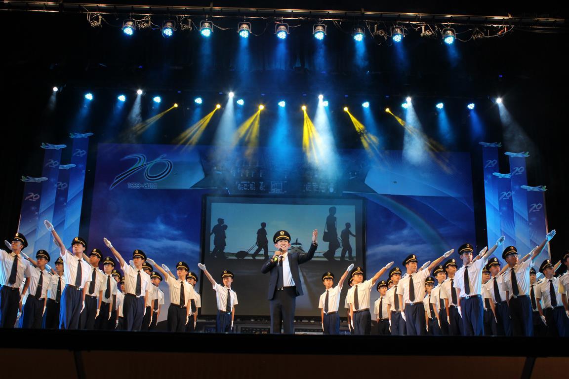 一路风雨兼程走过的二十年。第三篇章《圆梦南航,绽放荣光》中,五位优秀校友带来了他们的祝福,并分别就梦想、责任等主题,对新一代民航学子寄予希望。歌曲串烧节目青春激扬,一曲相亲相爱一家人将整场晚会带入了最高潮。