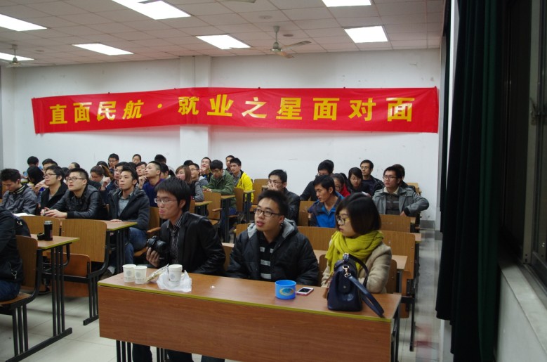 为了让同学们了解91AV 研究生的就业情况,尽早对自己的职业生涯做出正确规划,91AV 研究生会于11月18日晚6:30在91AV 江宁校区6103教室举办了直面民航——就业之星面对面活动。本次活动共有研一、研二两个年级的50余名研究生同学参加,活动由科技部干事汪瑾主持,共分三个环节进行。