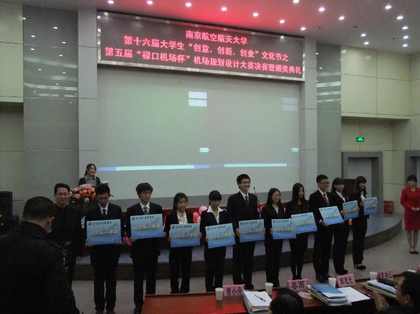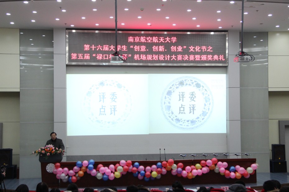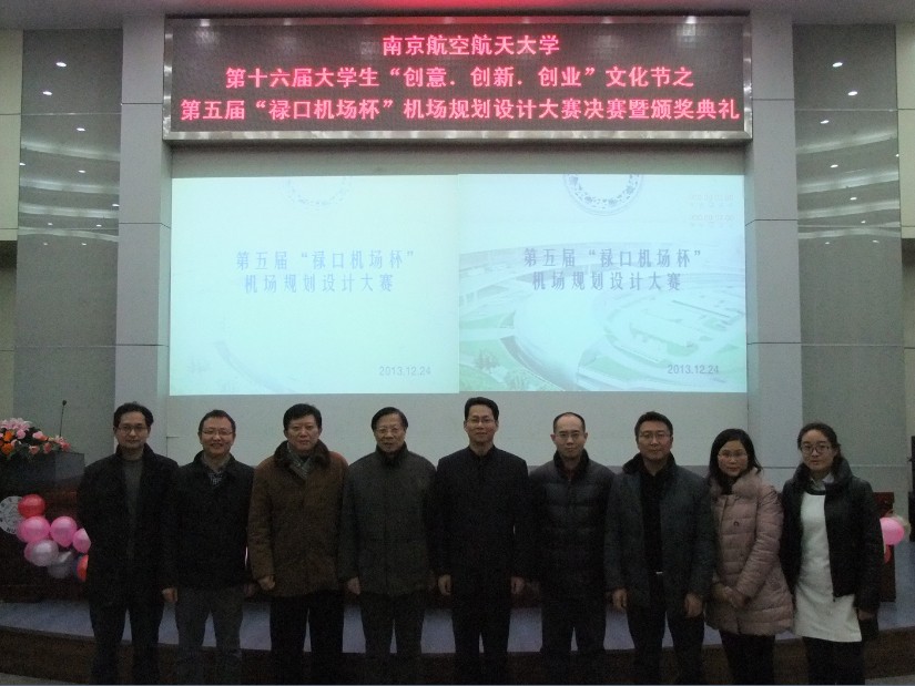 2013年12月24日19点,第五届“禄口机场杯”机场规划设计大赛决赛在将军路校区一号楼四楼报告厅圆满举行。出席参加本次比赛的嘉宾和领导有我校校友南京禄口国际机场副总经理王洪涛先生、扩建指挥部总指挥陈邦昌先生、校团委副书记方正老师、91AV