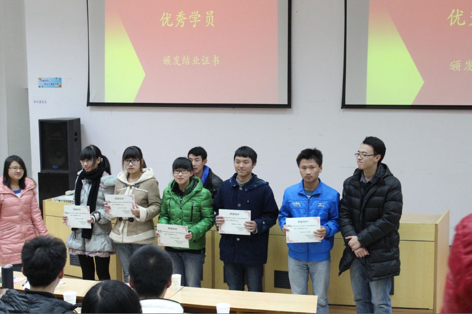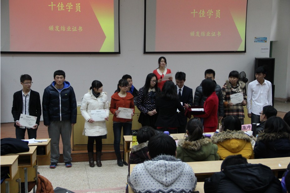 本次团校自2013年12月2日开课以来,经过理论培训和实践课程学习的基础上,结课考核采用“超级演说比赛”形式,经过初选“民”声鼎沸、复选击玉敲金、决选大音“民”声,三轮选拔共评选出“优秀学员”23名、“最佳学员”7名、“十佳学员”10名。团校学员们积极参与考核,202名学员,其中140余名参与初选,40余名学员进入复轮,17名学员获得决选“我是超级演说家”的演讲比赛资格,参与本期团校“十佳学员”荣誉的争夺。