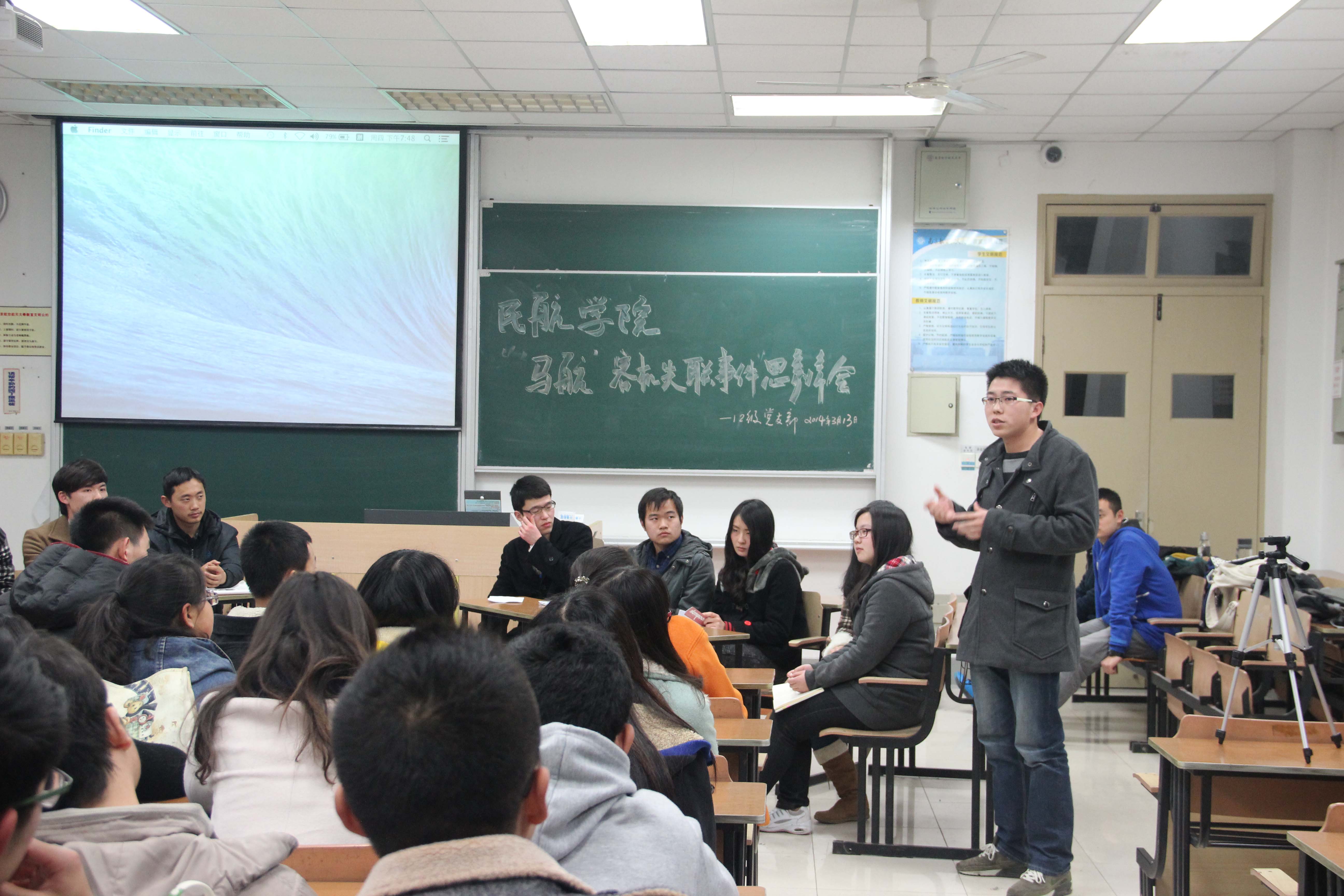 12级党支部在将军路校区6401举行了“马航客机失联事件给我们的启示”思辨会,并邀请到曾就职于顺丰航空公司的我校毕业校友李开建学长作为特邀嘉宾参与思辨。