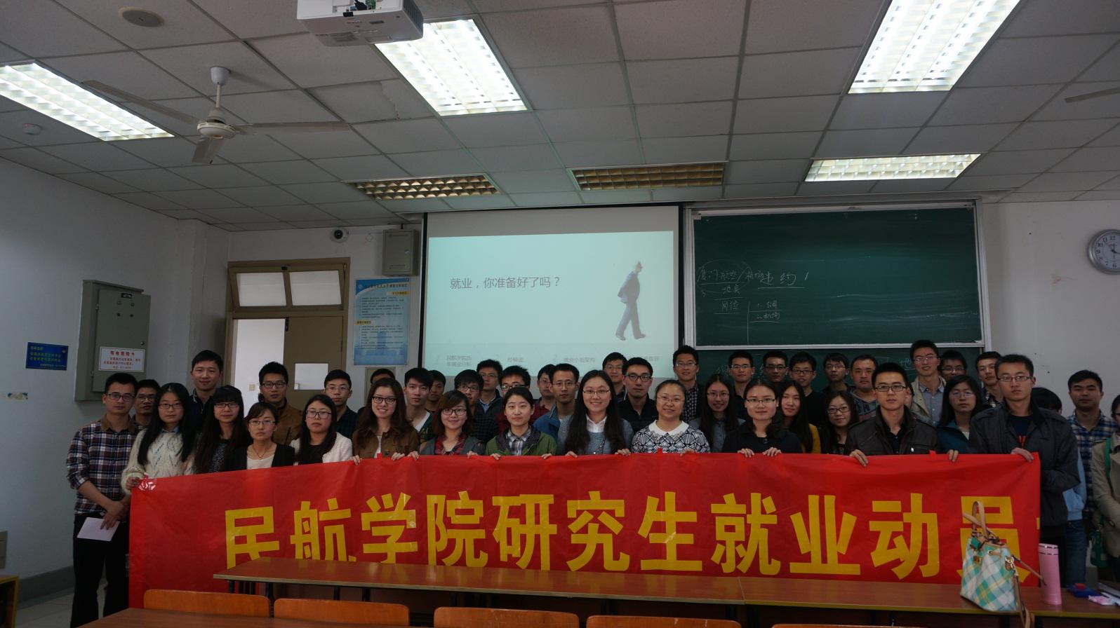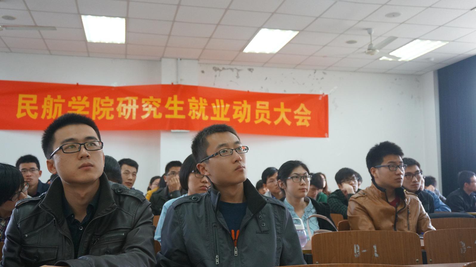 从2008年至今的研究生就业情况,并指出就业层次分布和就业区域呈明显的分块集中的趋势,这都要求同学们尽早做好思想和行动上的准备。最后她鼓励广大12级研究生,我院的民航、航空特色还是很明显的,较其他学校、其他学院有着较强的竞争力,同学们现在应该做的,就是总结前人的经验,取其精华,深入分析,为以后的就业做好充分的准备。