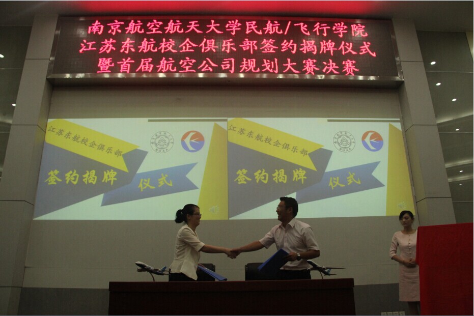 和江苏东航合作创办,以培养面向江苏东航等民航系统单位的高素质管理和技术人才的职业实践型学生社团,由双方共同指导俱乐部开展系列培训活动、实施实践操作项目。在揭牌仪式上,宋凯与王心磊共同签署俱乐部协议并为江苏东航校企俱乐部揭牌,肖志华为校企俱乐部首批优秀会员代表颁发江苏东航宣传大使聘书。