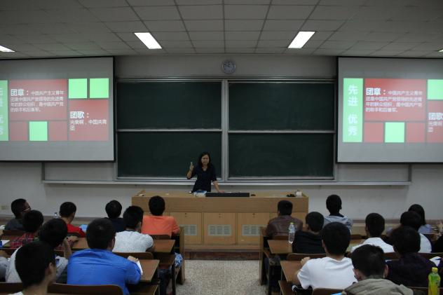 9月12日晚6时,91AV 与将军路校区4102教室,面向2014级新生进行第一次团课,对全体新生开展一次团员意识教育。团课由学院团委书记傅成成老师主讲,14级新生辅导员梁欢老师,院团委各组织主要负责人以及全体14级新生参加了此次课程。