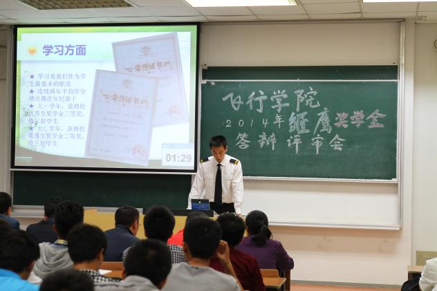 10月21日,飞行学院在6301教室举行了2014年飞行学员雏鹰奖学金答辩评审会。本次答辩会由民航/飞行学院党委副书记宋凯老师、我院04届杰出校友——上海航空公司机长孙文吉先生以及学院辅导员担任评委。在整个答辩会上对答辩人的个人展示、精神面貌、心理素质等方面进行综合的评定与考核。14级的飞行学员们也观摩了此次答辩会。