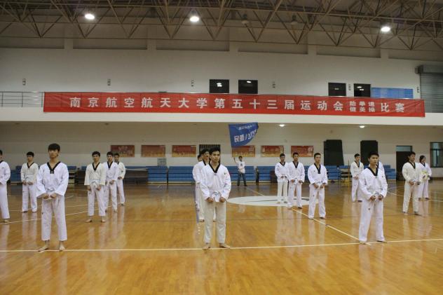 上午9:30,跆拳道比赛队员全部入场完毕,比赛正式开始。各院体育健将伴随着整齐的口号,一招一式,指点赛场。伴随着“山中猛虎,水中蛟龙,民航飞行,卧虎藏龙”那响亮的口号,民航/飞行学院参赛队伍于第十一位登场。雪白划一的道服,整齐有序列队,气势恢弘的呐喊和流畅有力的动作体现出了健儿们背后努力的汗水,赢得现场的一片喝彩。经过激烈的角逐,民航/飞行学院以总分第一的优异成绩荣获跆拳道比赛特等奖,为自己的付出收获胜利果实。