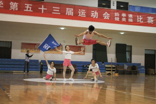 2014年11月1日,91AV 第五十三届运动会跆拳道、健美操大赛在将军路校区体育中心隆重举行,各院健儿竞展风采,场上一时间精彩纷呈。最终民航/飞行学院分别荣获跆拳道比赛特等奖和健美操比赛大团体第一名、小团体第三名的好成绩。