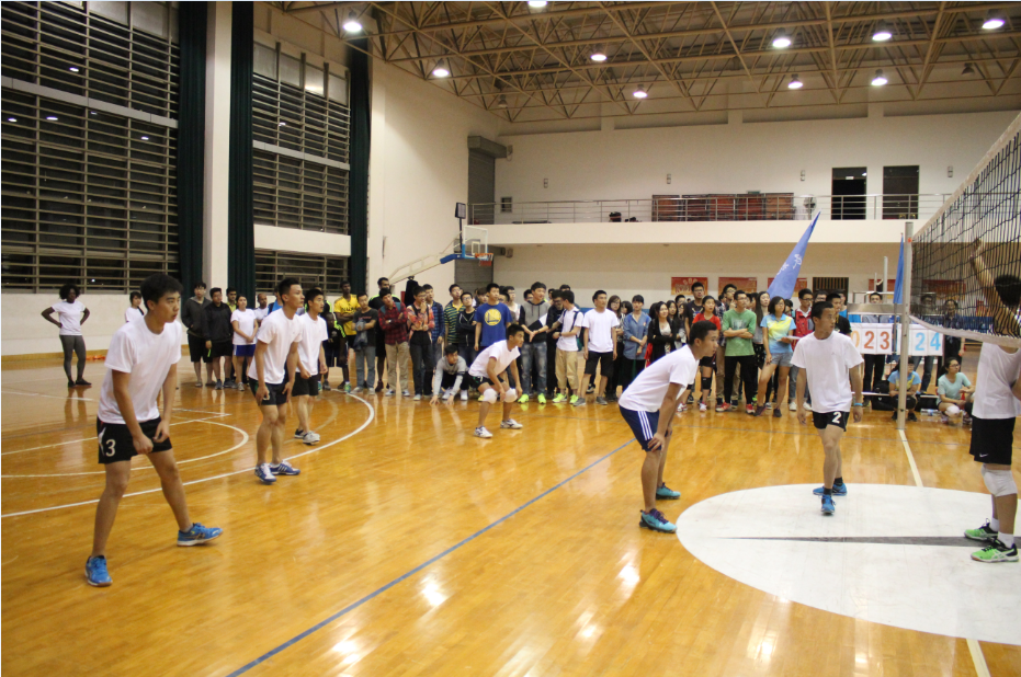此次比赛也体现了友谊第一、比赛第二的竞技精神。比赛期间,刚刚获得季军的国际教育学院的男排队员在女排比赛结束后前来为落后的七院加油助威,为气氛紧张的赛场平添了一份友好与和谐。
